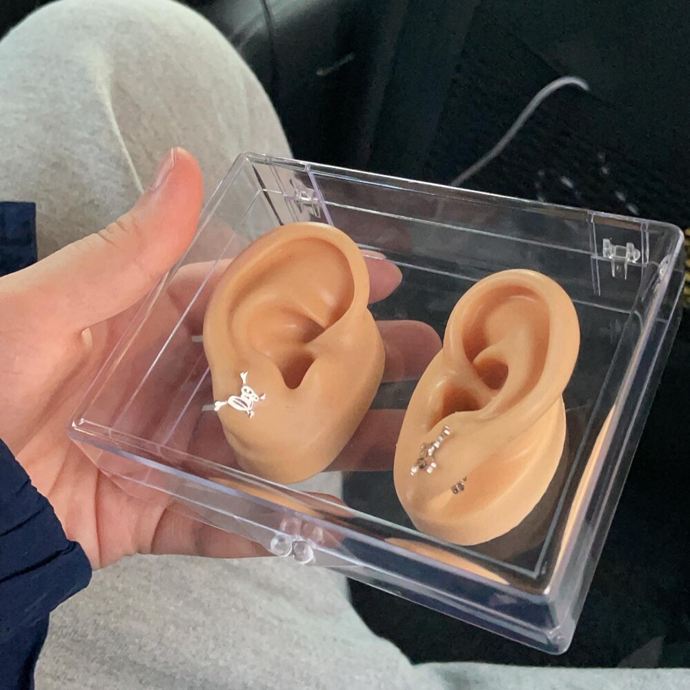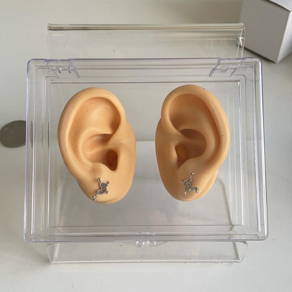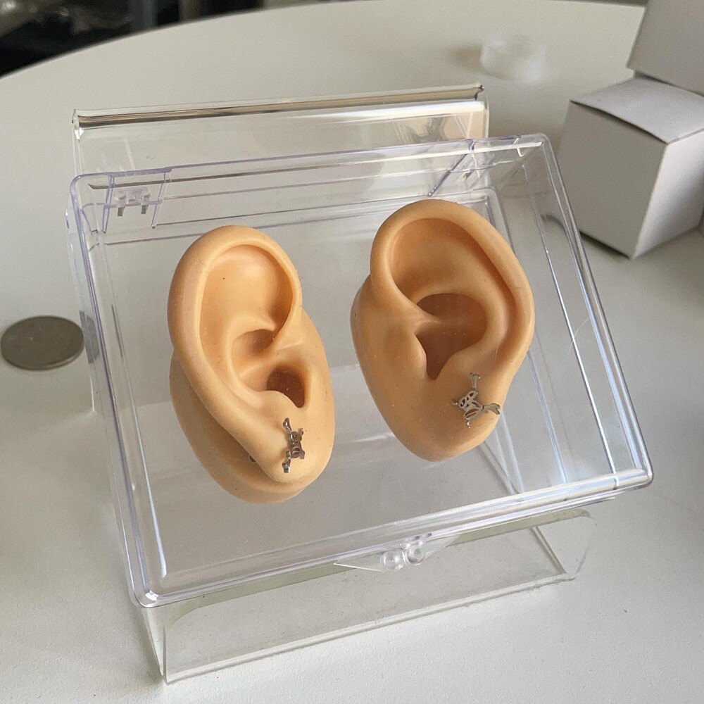 한쌍의 귀걸이 , 한쌍의 가짜귀와 플라스틱 케이스가 함께 배송됩니다.